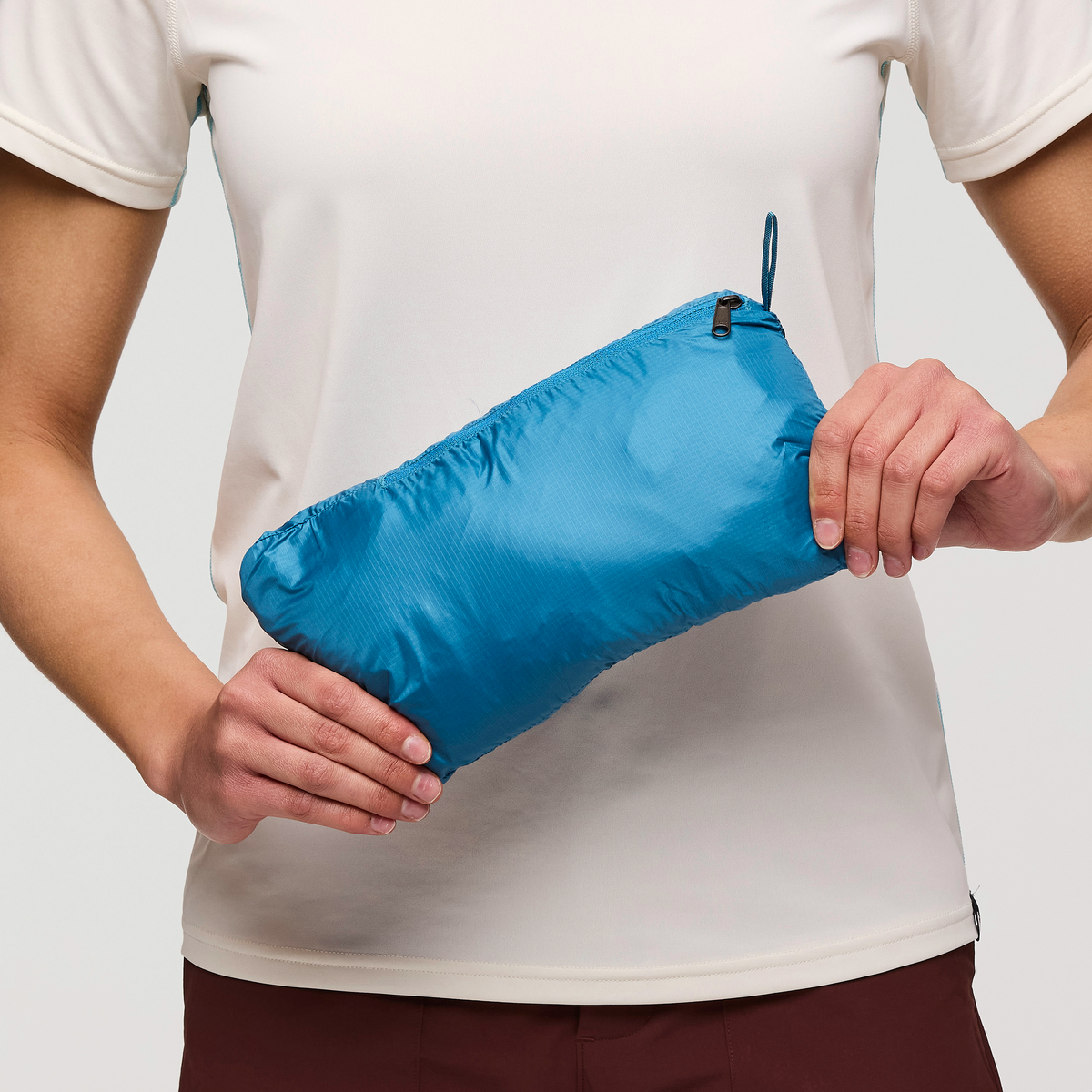 - Packs inside its own interior chest pocket